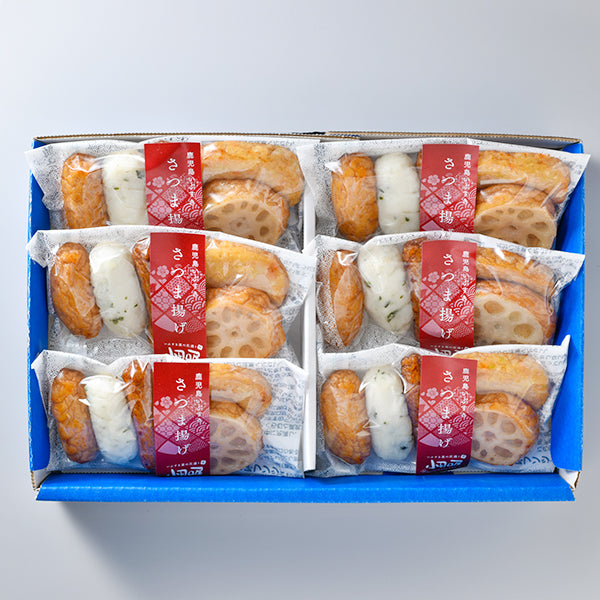 | 内容量 | (つけあげ20g×1、しそ天20g×1、いわし天20g×1、野菜天25g×1、れんこん天43g×1)×6 |
